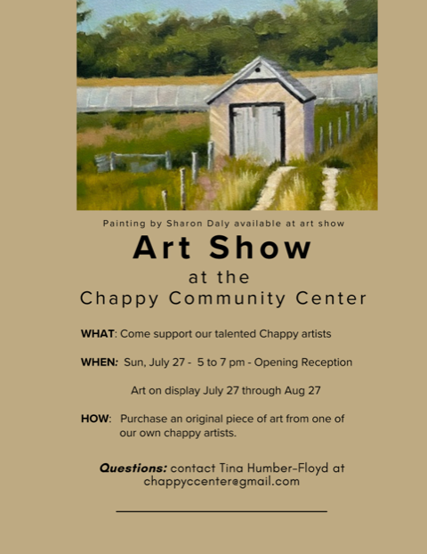 If you have any questions feel free to reach out to Tina Humber-Floyd, chappyccenter@gmail.com